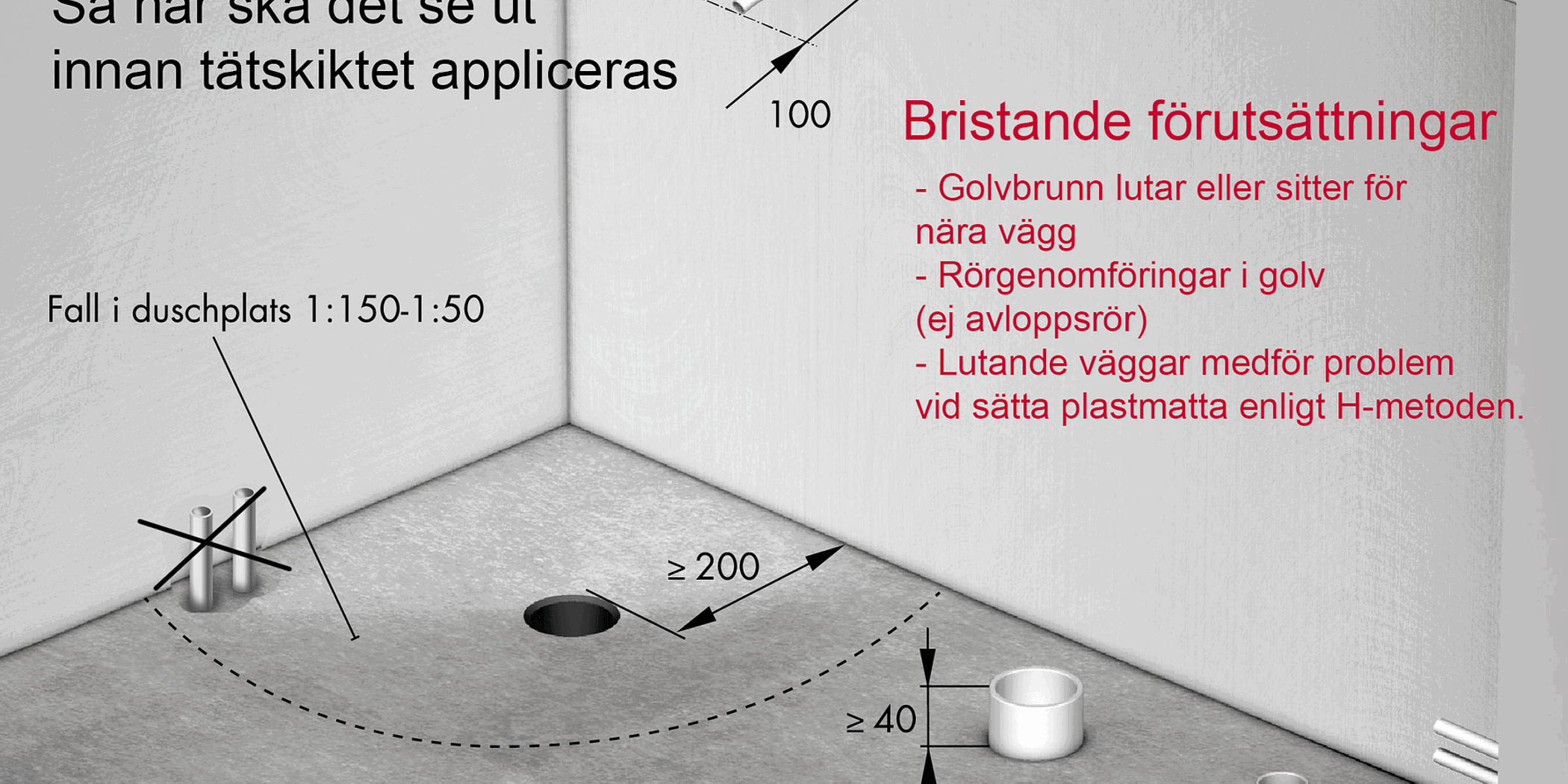 Gamla golvbrunnar, försvårande rörgenomföringar och felaktiga fall mot golvbrunn. Det är några av de vanligaste, och mest allvarliga, bristerna när GVK-företag monterar tätskikt i våtrum. GVKs undersökning visar svart på vitt att det krävs bättre samordning i byggprocessen för att minska gapet mellan branschens regler för säkra våtrum och de förutsättningar som faktiskt gäller ute på byggplatsen.