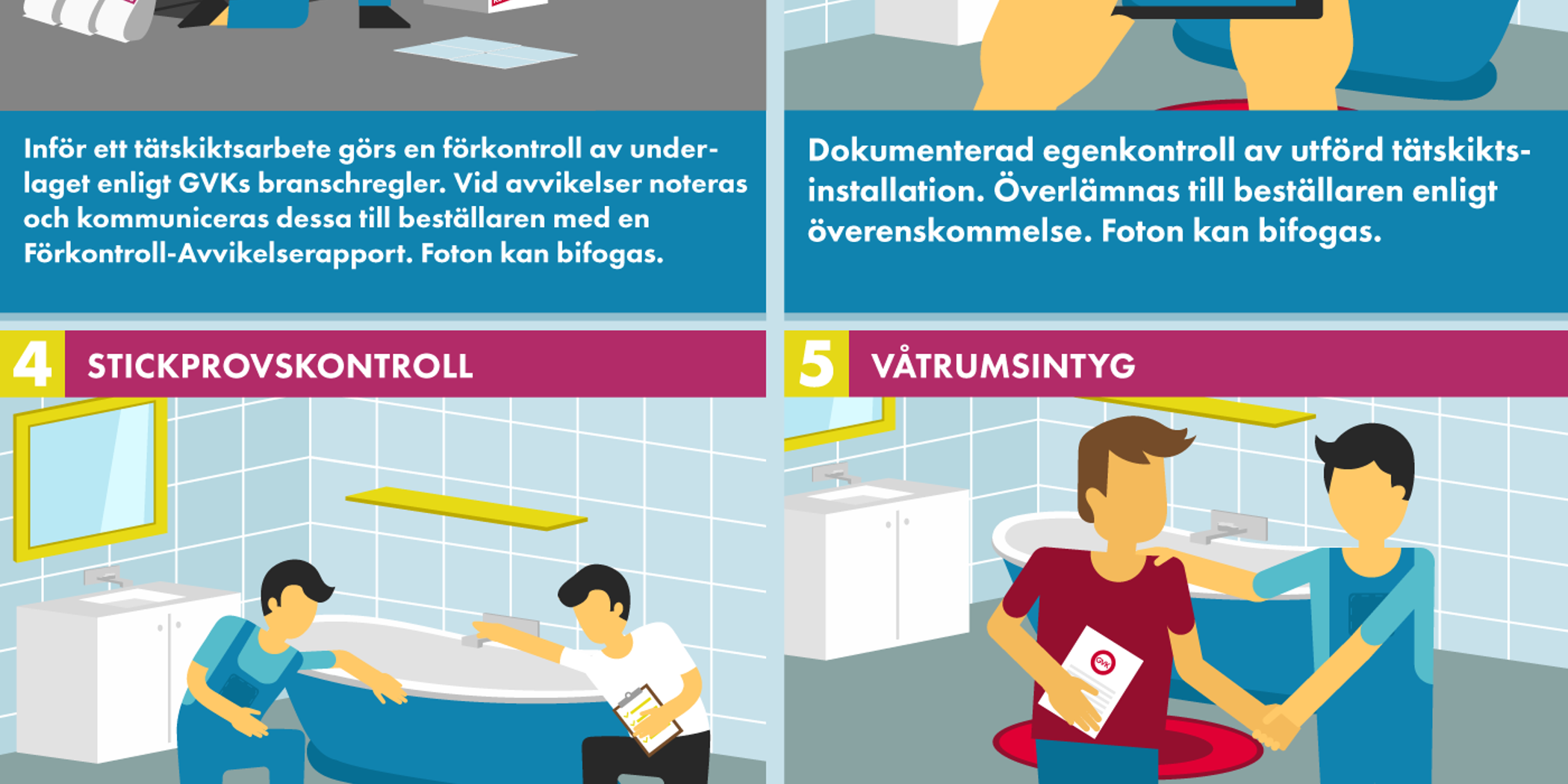 Som ett led i att uppfylla målet vattentäta och säkra badrum har stiftelsen GVK skapat en kvalitetsapp som dokumenterar arbetsgång, tätskiktsmaterial, avvikelser från branschregler och annat som har betydelse för våtrummets kvalitet. Appen ger en tydlig överblick av installationen och är därmed tryggt både för GVK-företaget och för beställaren.