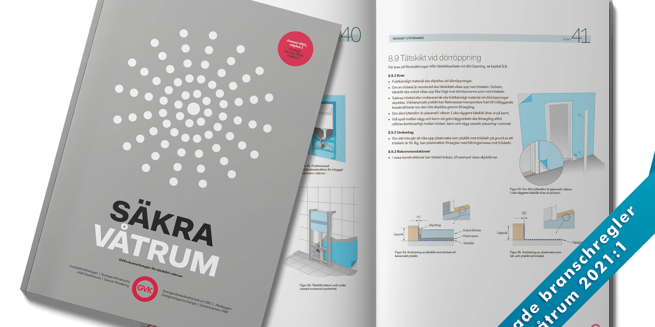 Branschreglerna Säkra Våtrum uppdateras den 1 januari 2021. Reglerna är samordnade med de närbesläktade branschorganisationerna Säker Vatten och BKR, Byggkeramikrådet. I en serie artiklar kommenterar GVK de viktigaste förändringarna i branschreglerna, varför de gjorts och vad det rent praktiskt innebär för våtrumsentreprenören. Säkra Våtrum 2021:1 gäller samtliga installationer som påbörjas efter 1 januari 2021.