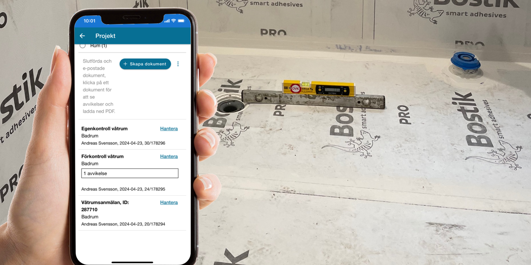 Egenkontrollen är, tillsammans med förkontrollen, ett viktigt verktyg för plattsättaren eller golvläggaren ute på arbetsplatsen. Det är inte svårt att ta upp telefonen och dokumentera vilka moment man gör. Då finns klara bevis om något skulle krångla längre fram. Egenkontrollen styrker utförda arbetsmoment och tidsåtgång.